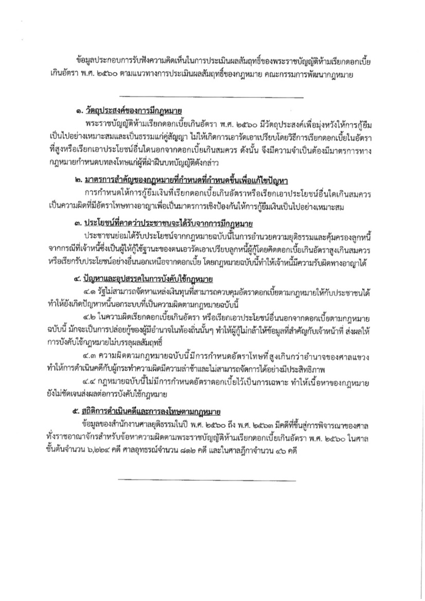 การประเมินผลสัมฤทธิ์ของพระราชบัญญัติห้ามเรียกดอกเบี้ยเกินอัตรา พ.ศ. 2560 ตามพระราชบัญญัติหลักเกณฑ์กา...
