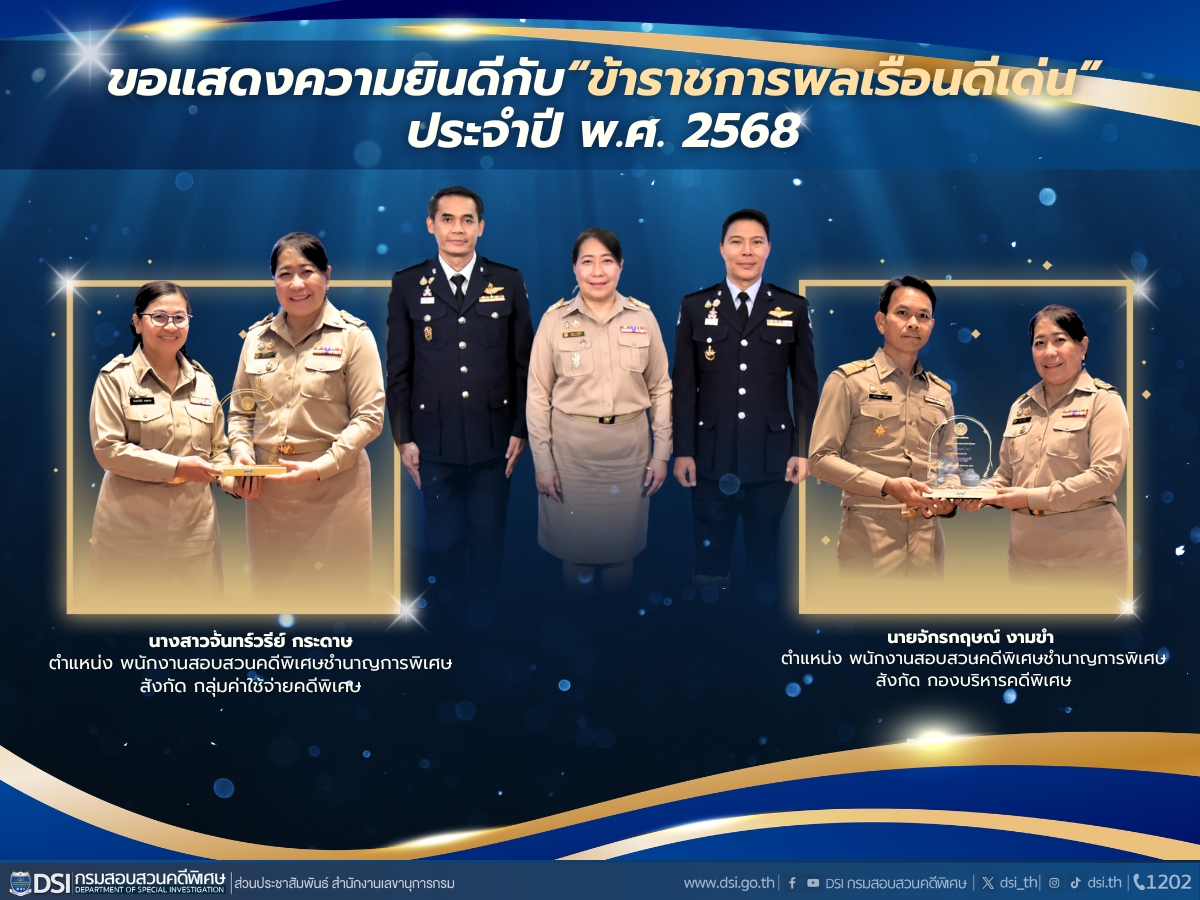 กรมสอบสวนคดีพิเศษ ขอแสดงความยินดีกับ“ข้าราชการพลเรือนดีเด่น” ประจำปี พ.ศ. 2568
