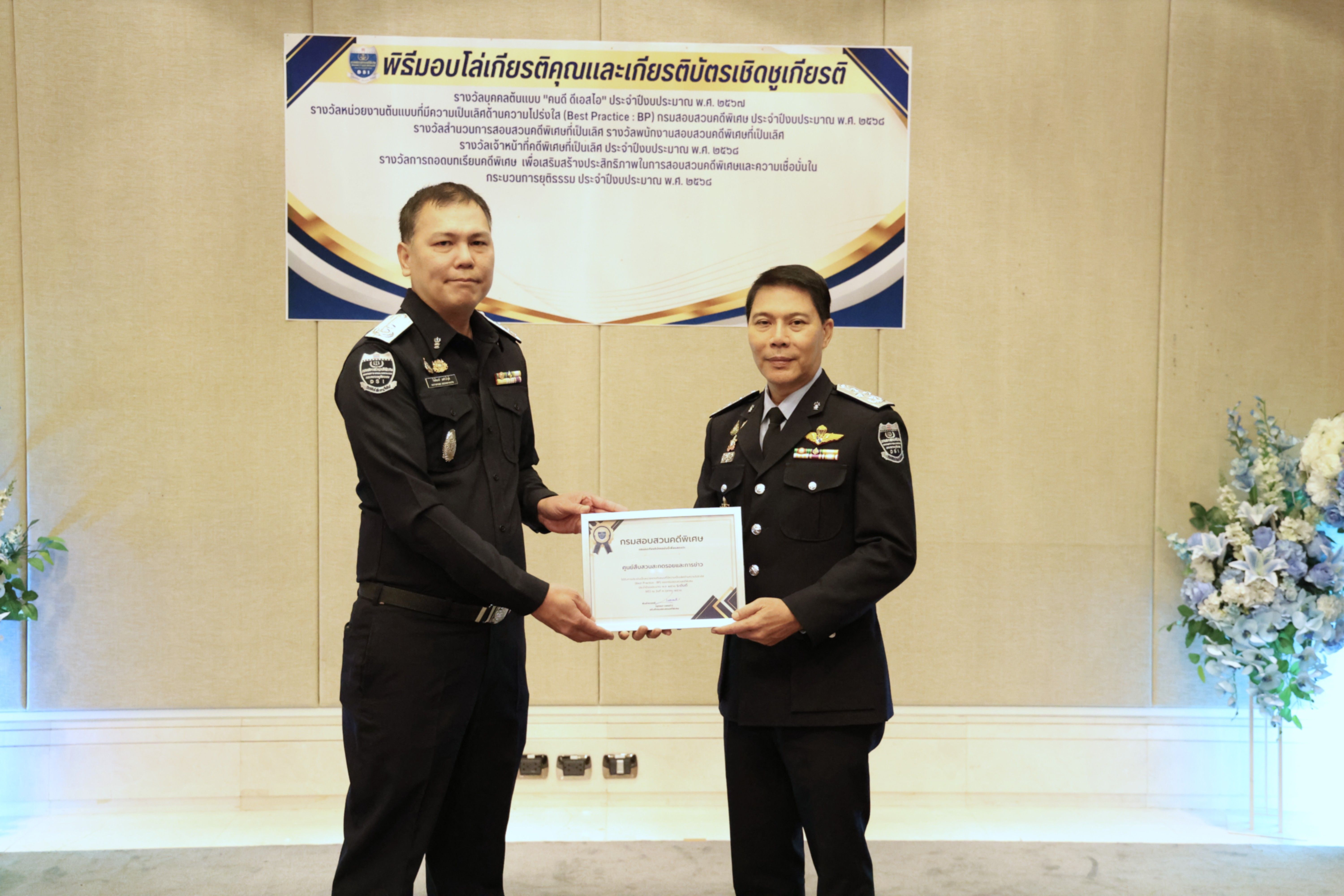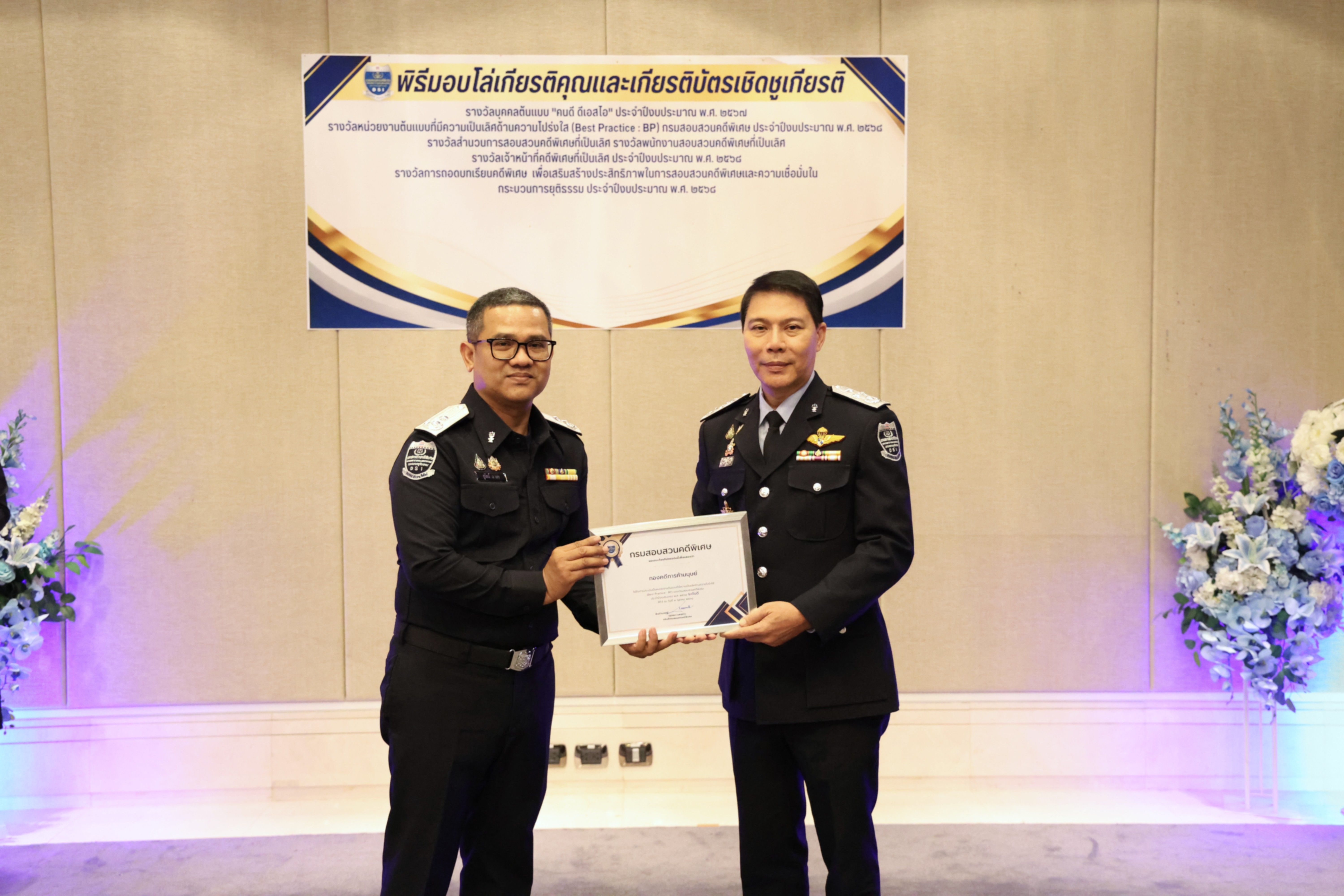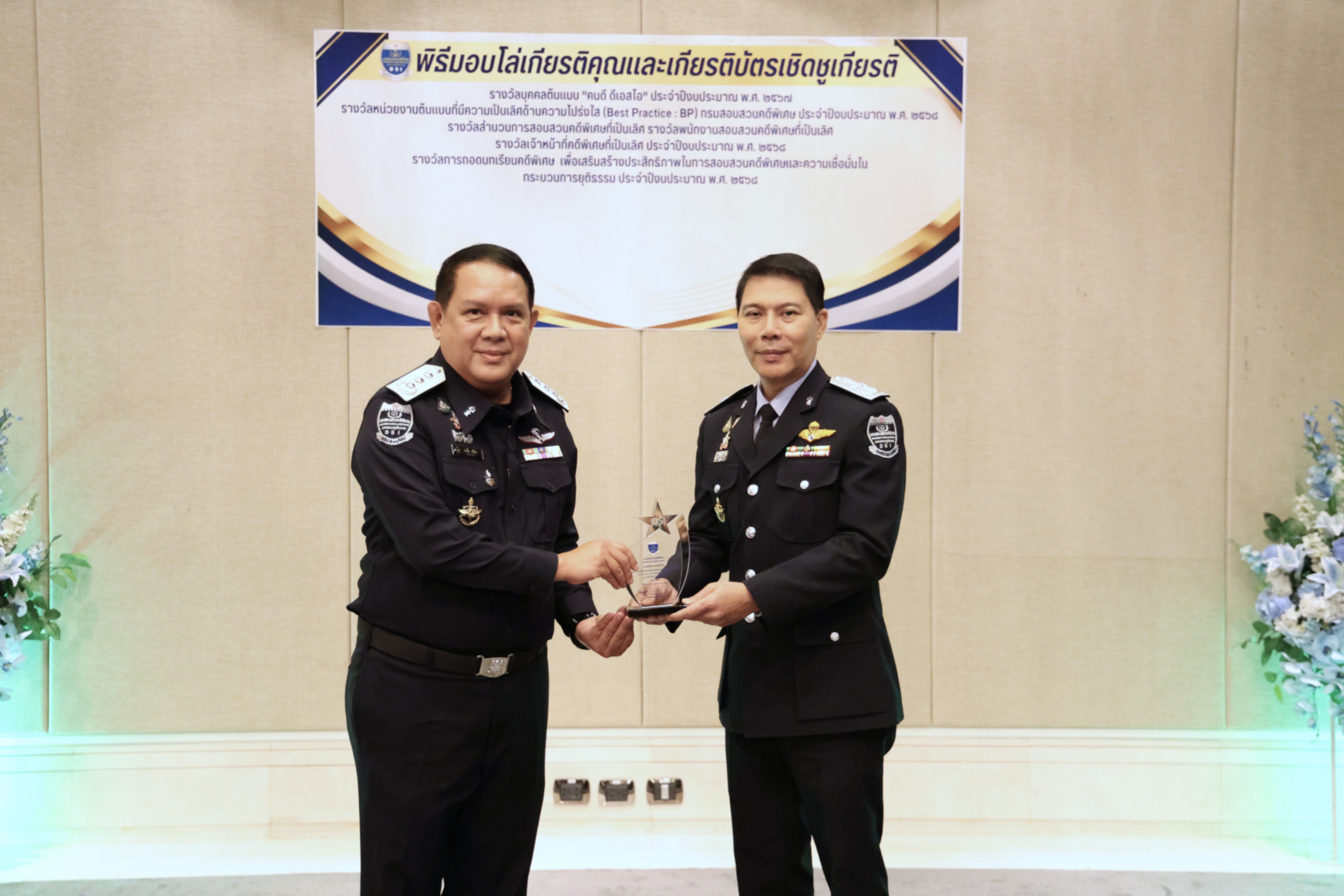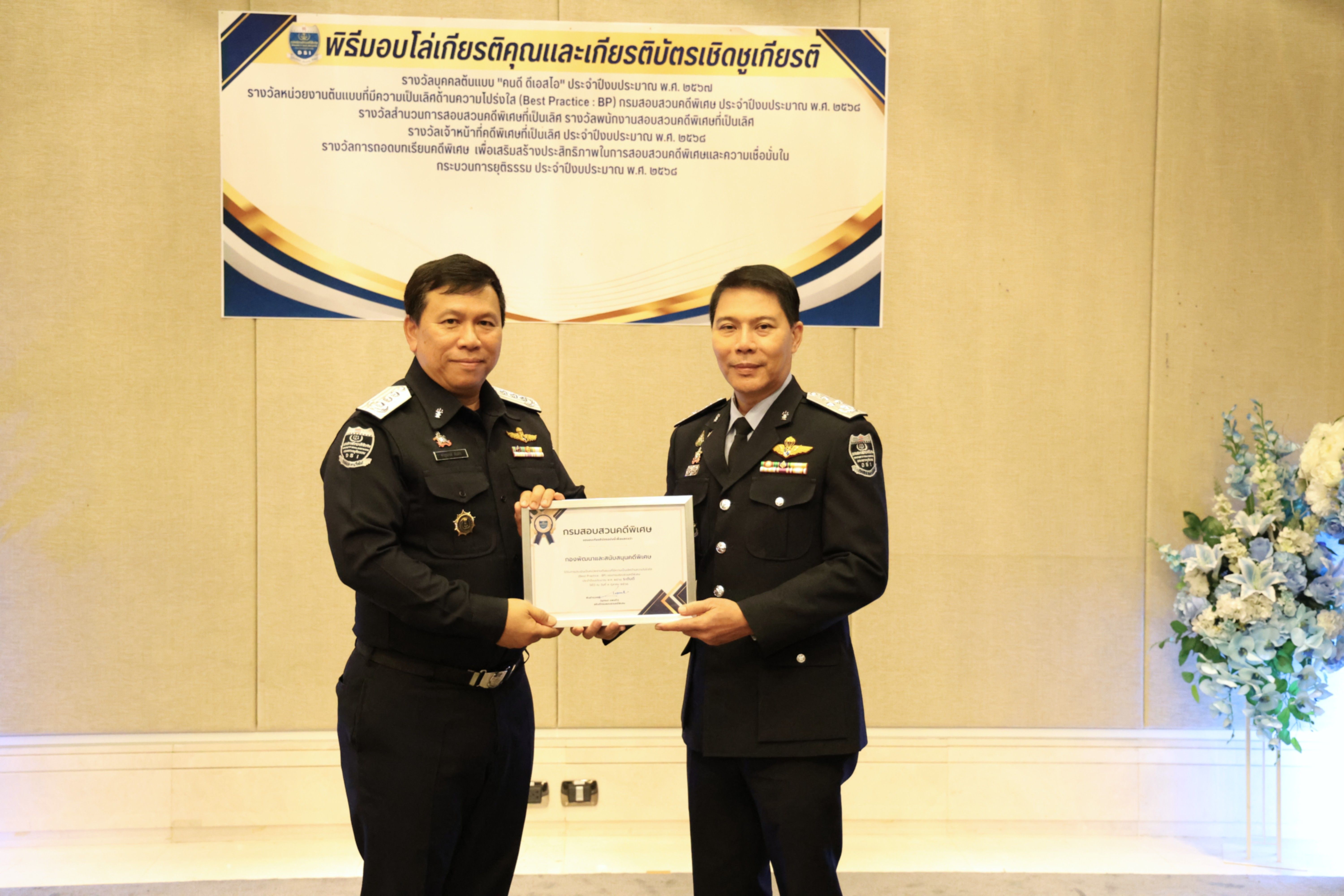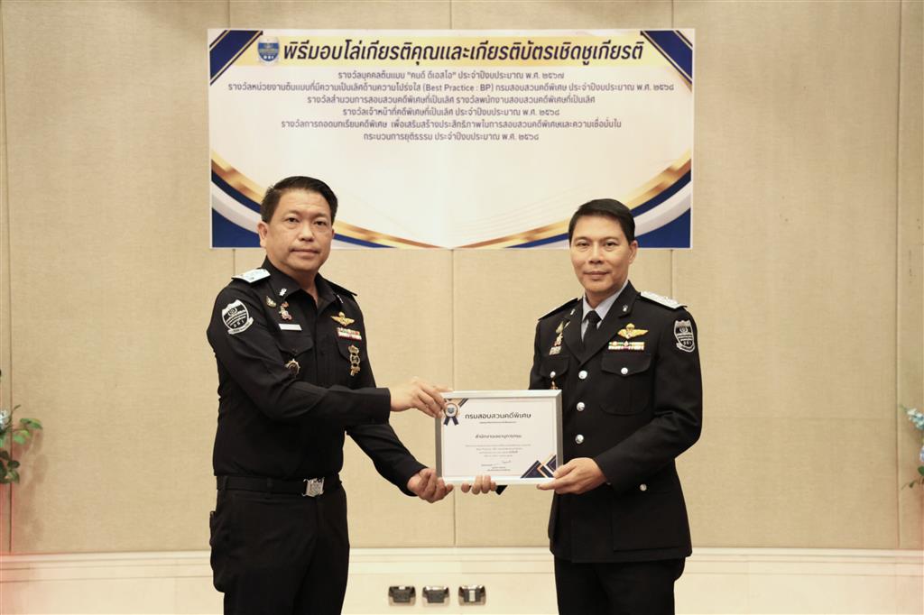 และรางวัลหน่วยงานต้นแบบที่มีความเป็นเลิศด้านความโปร่งใส (Best Practice : BP) ของกรมสอบสวนคดีพิเศษ