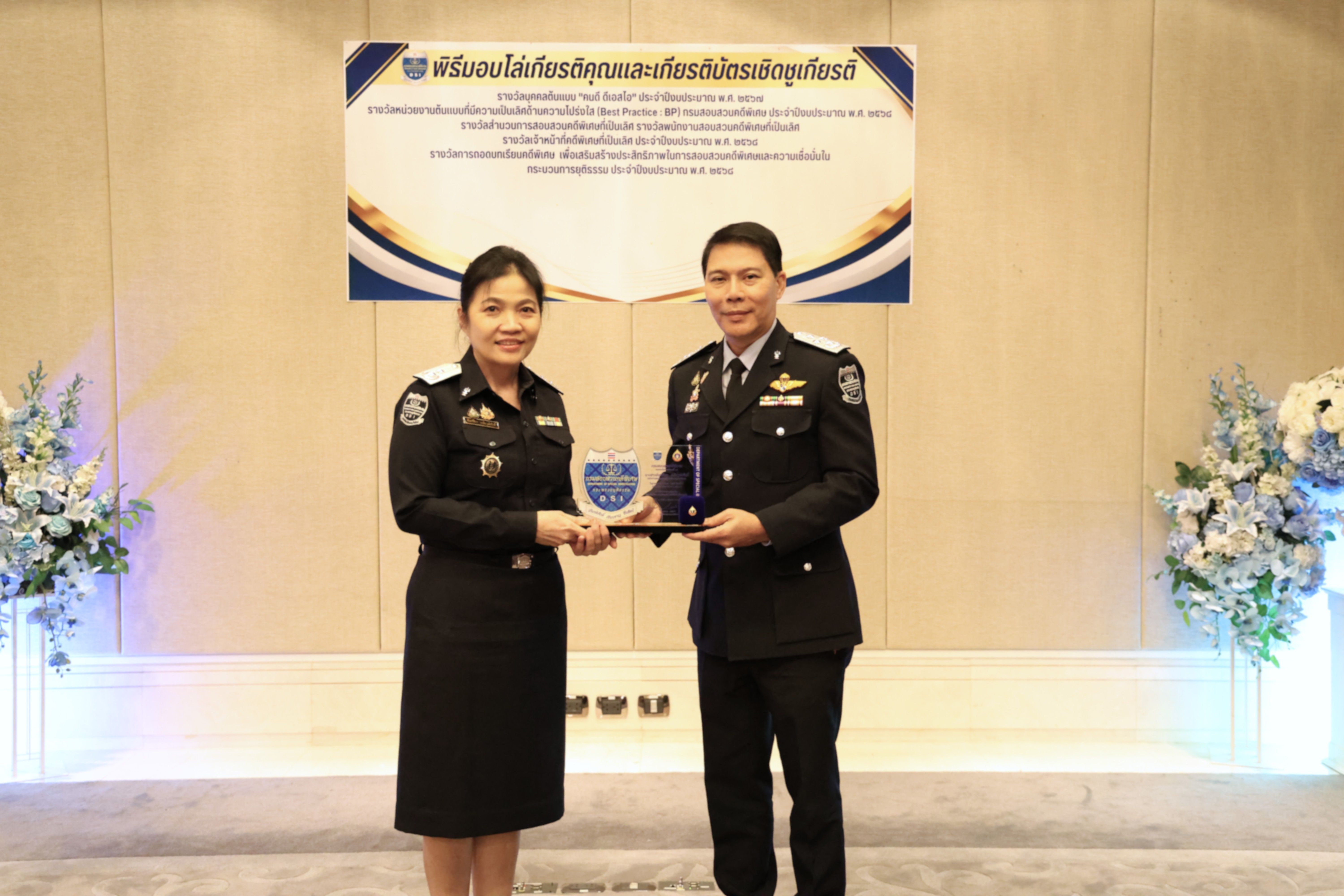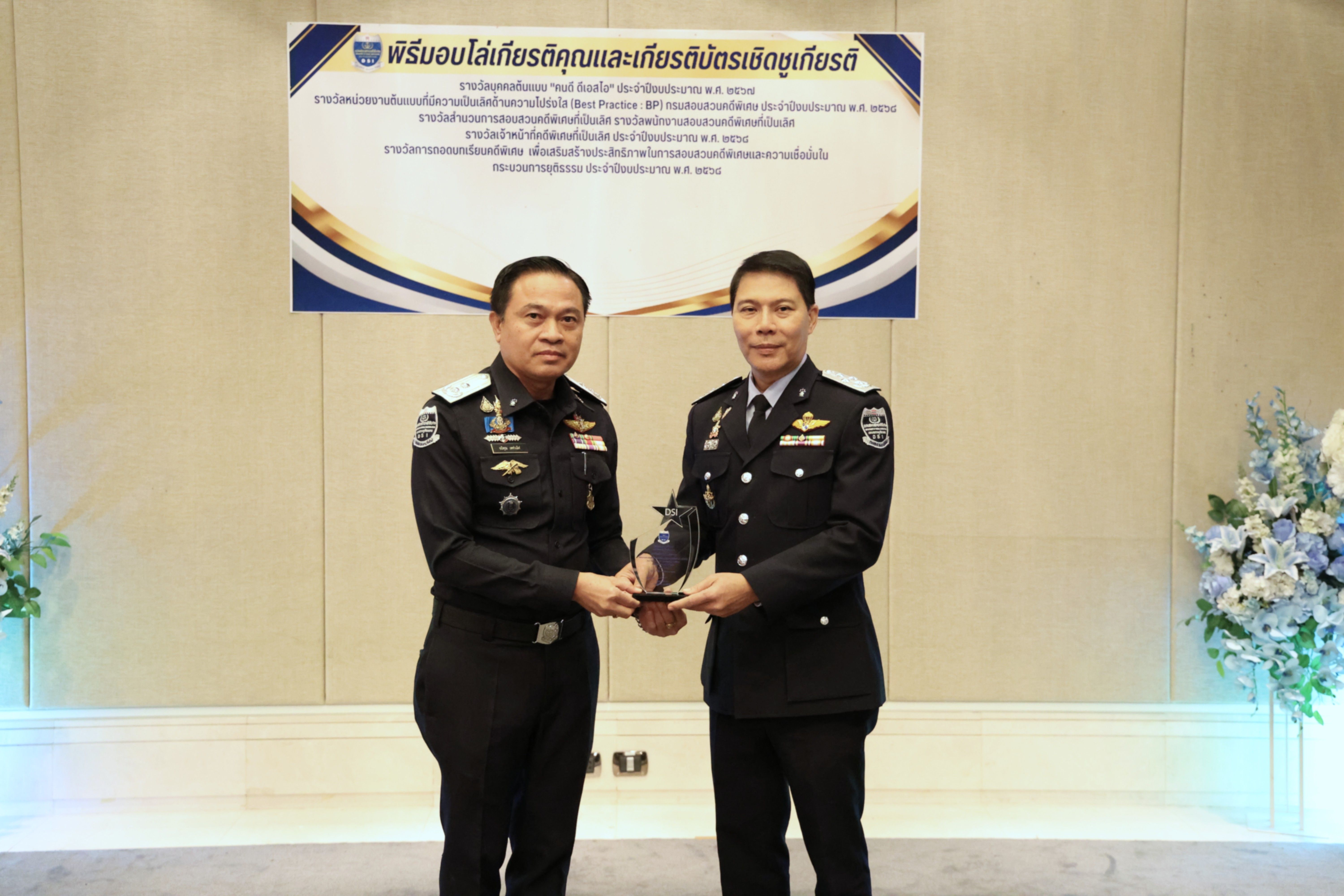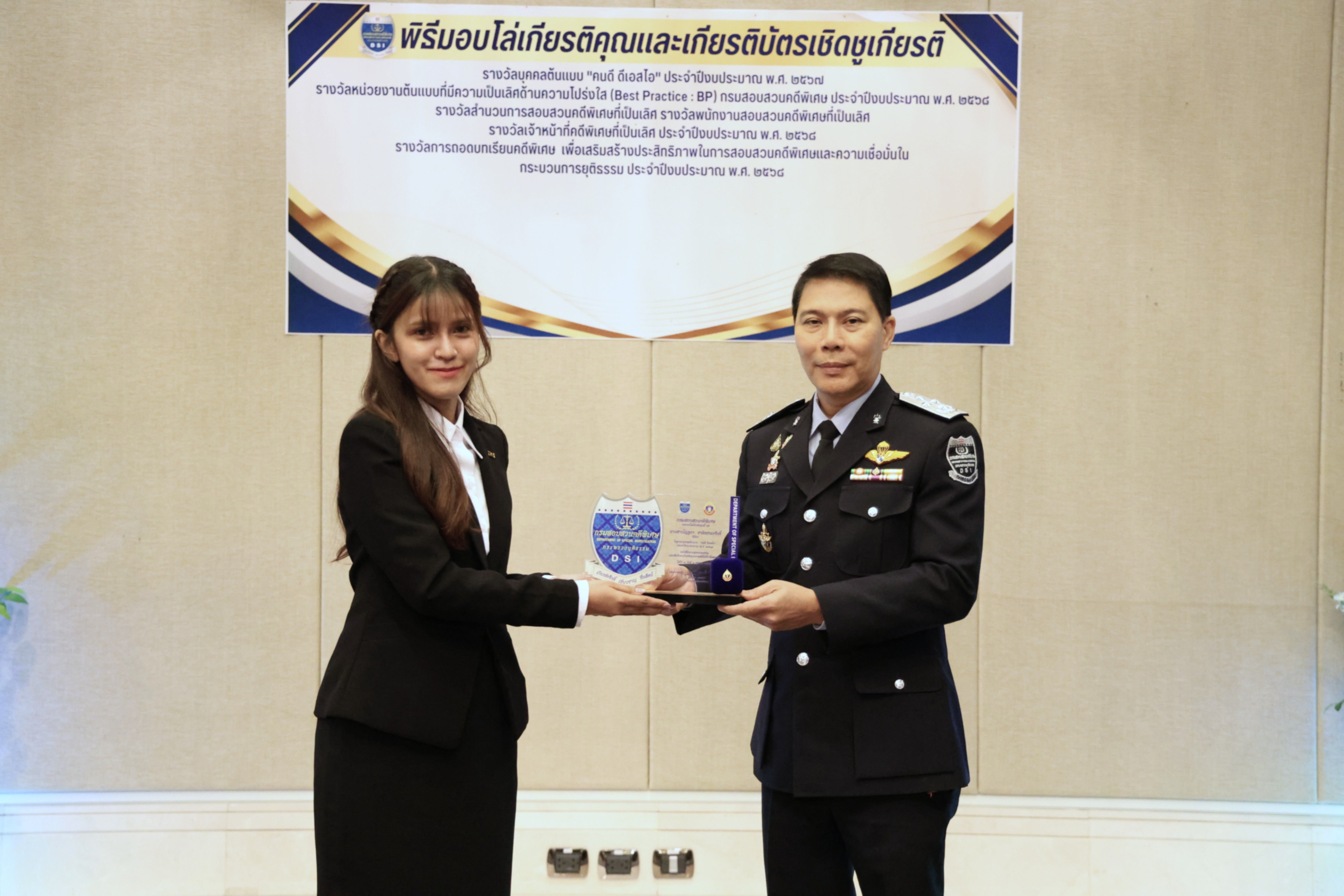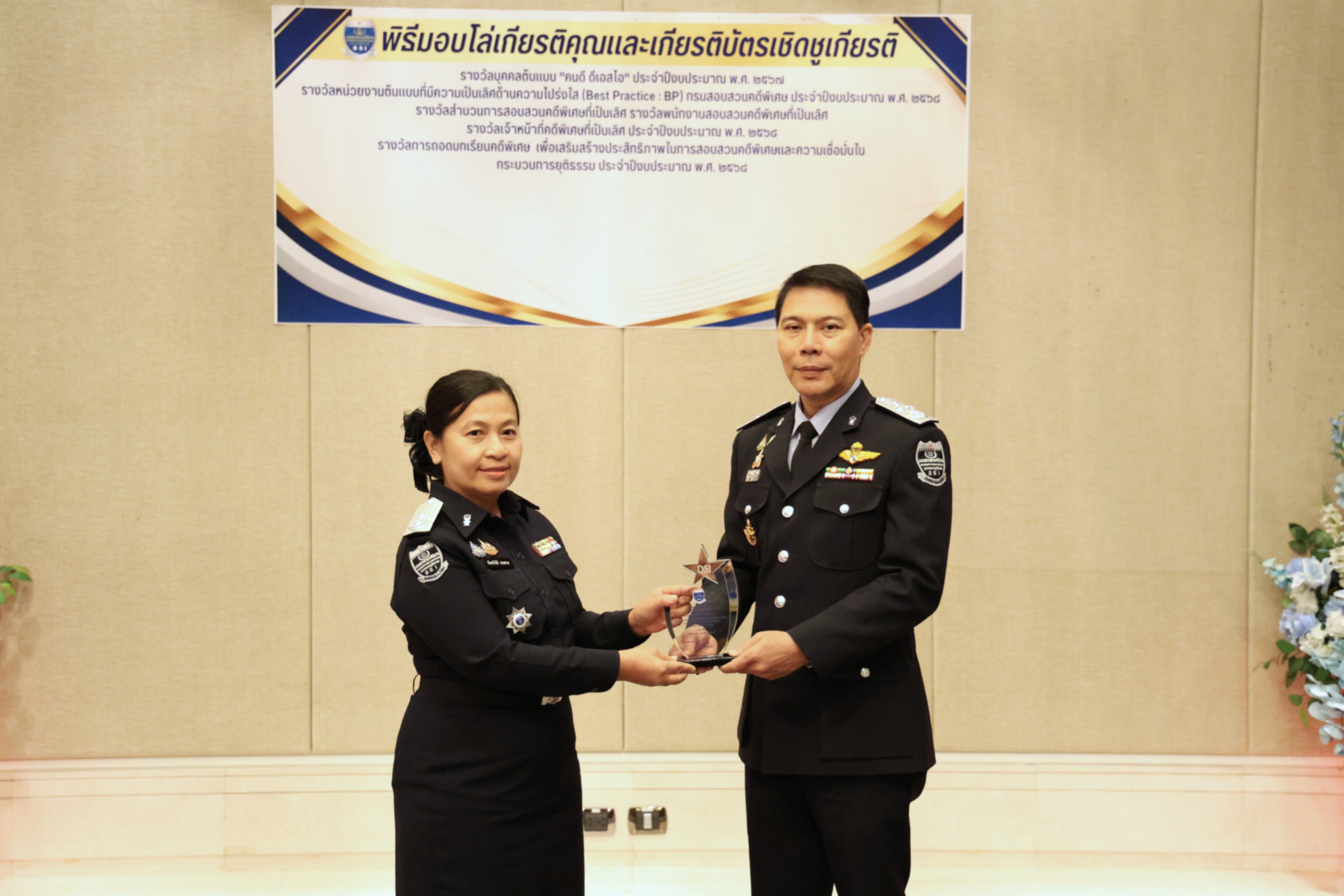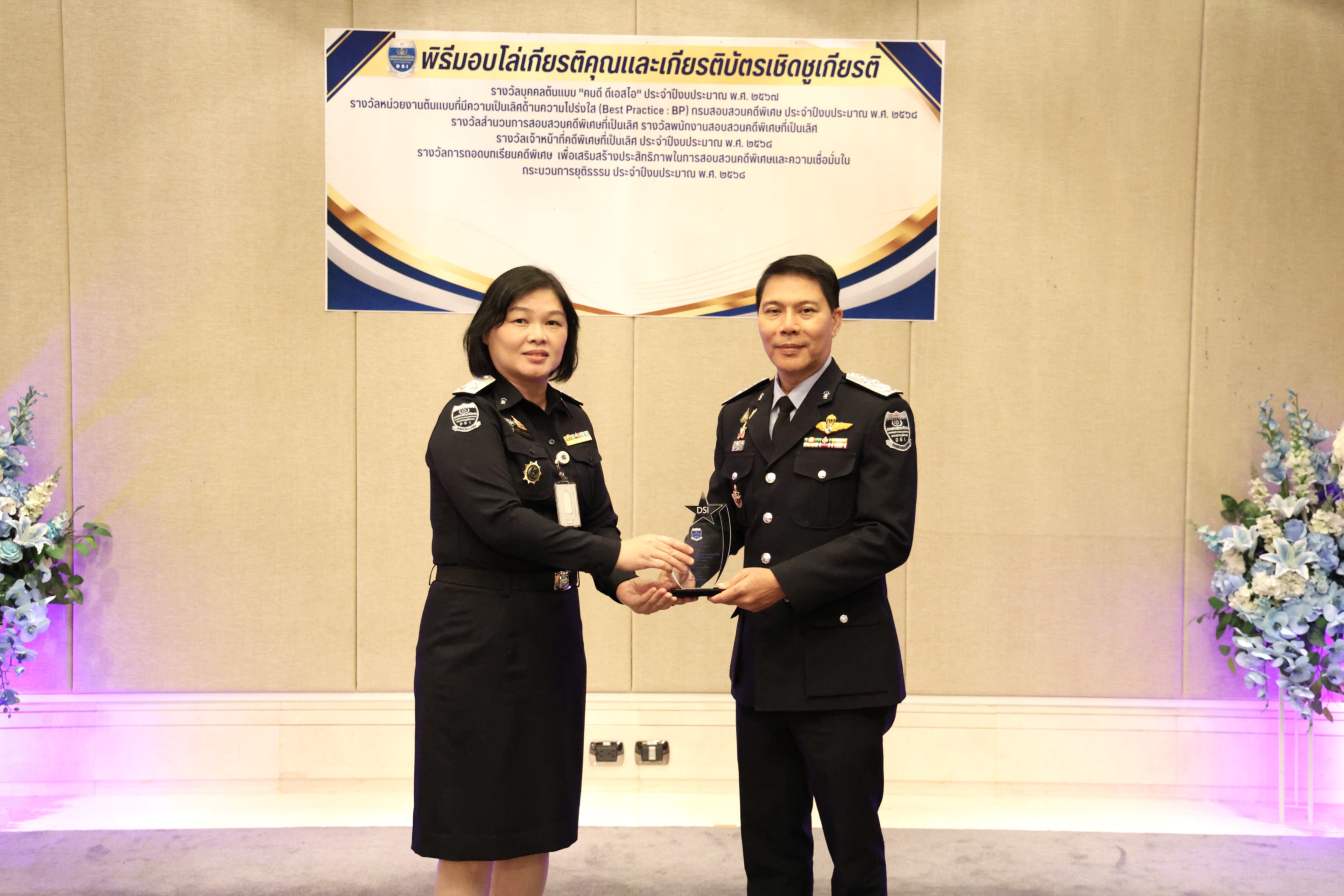 และรางวัลหน่วยงานต้นแบบที่มีความเป็นเลิศด้านความโปร่งใส (Best Practice : BP) ของกรมสอบสวนคดีพิเศษ