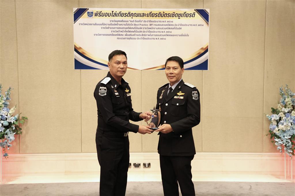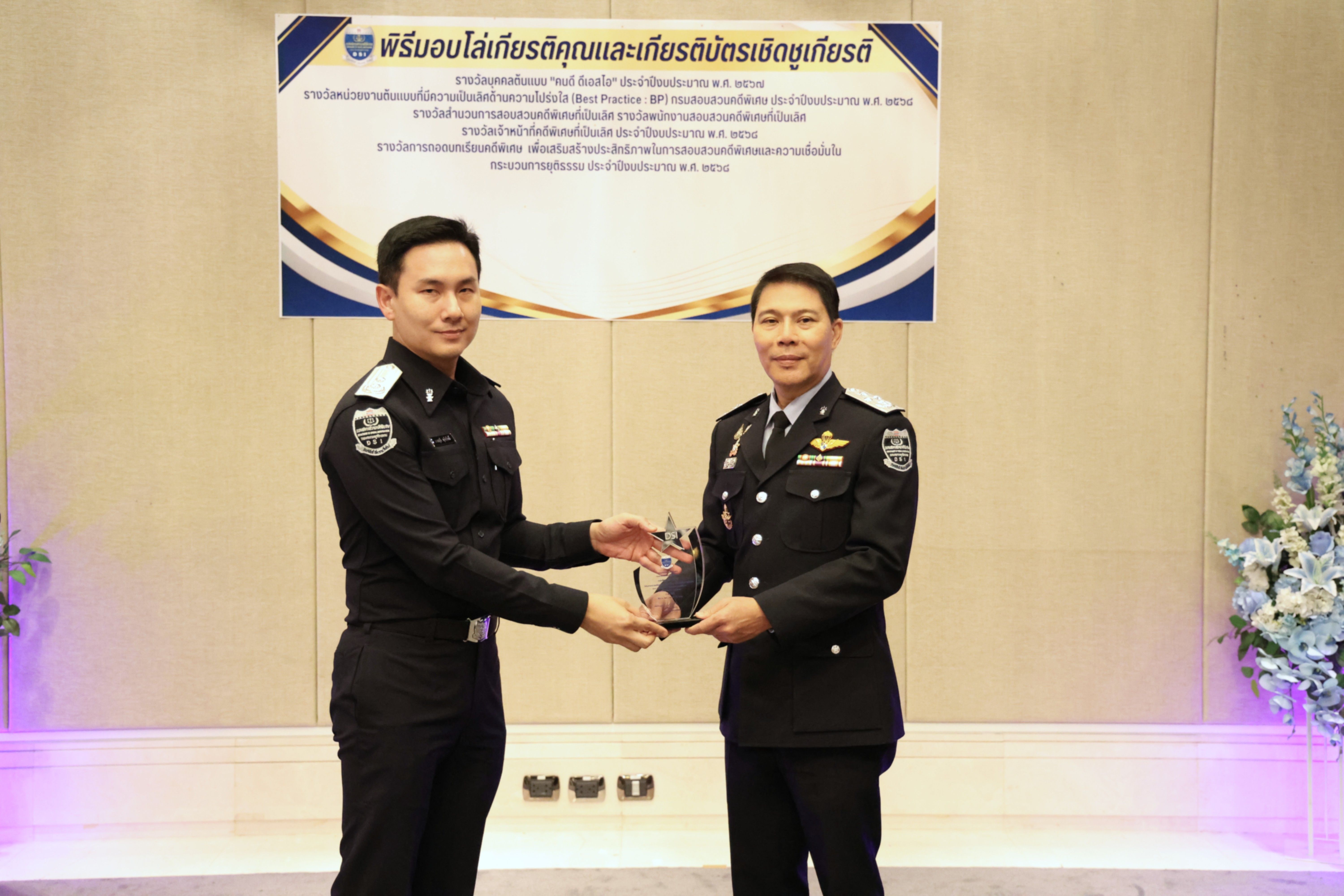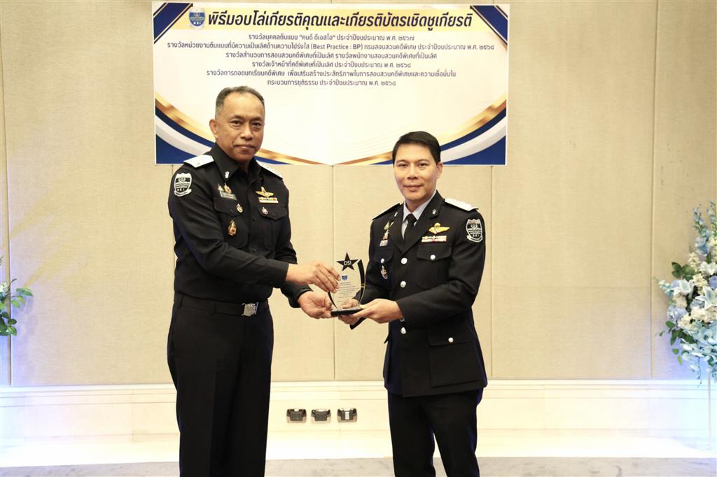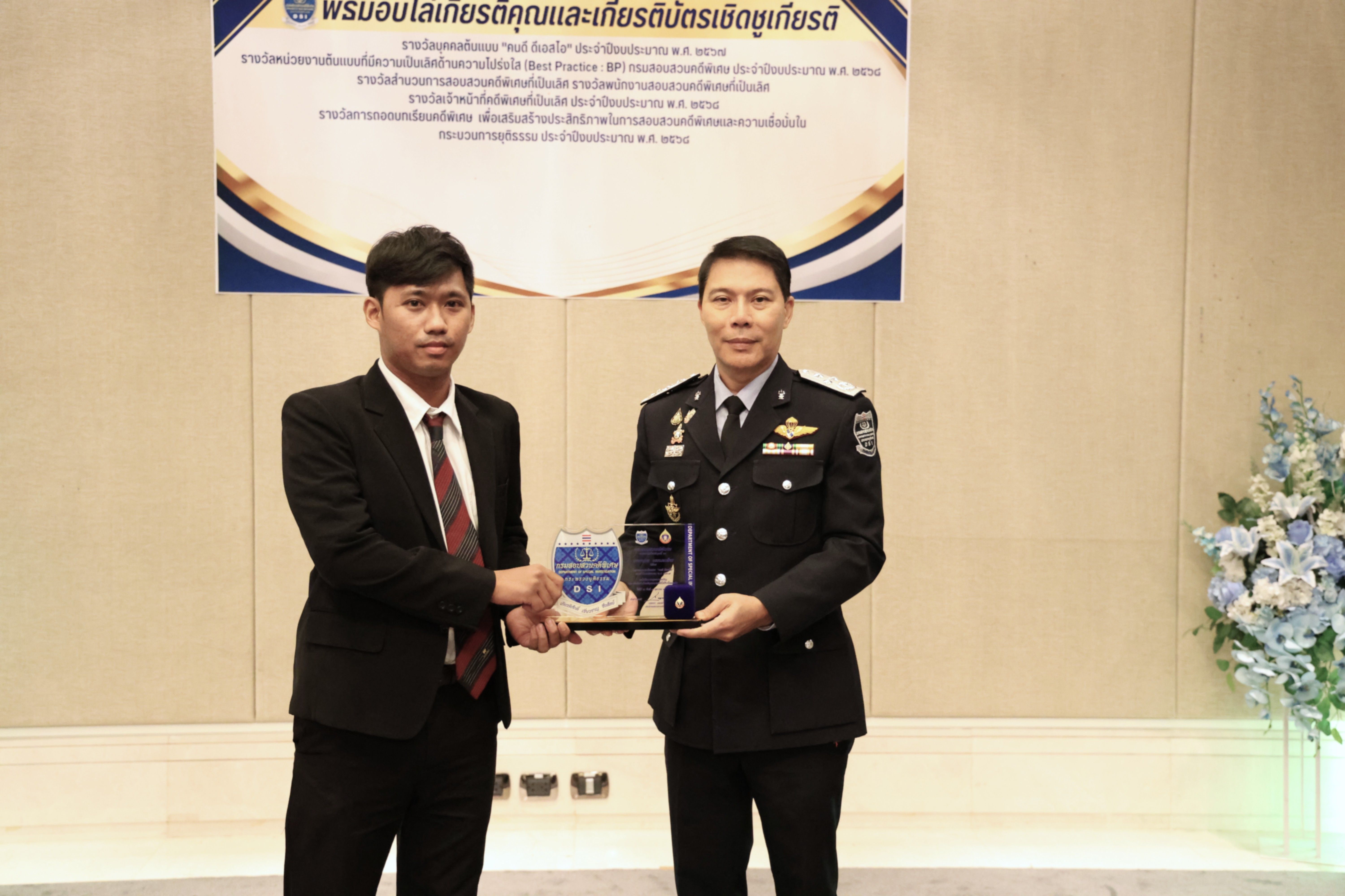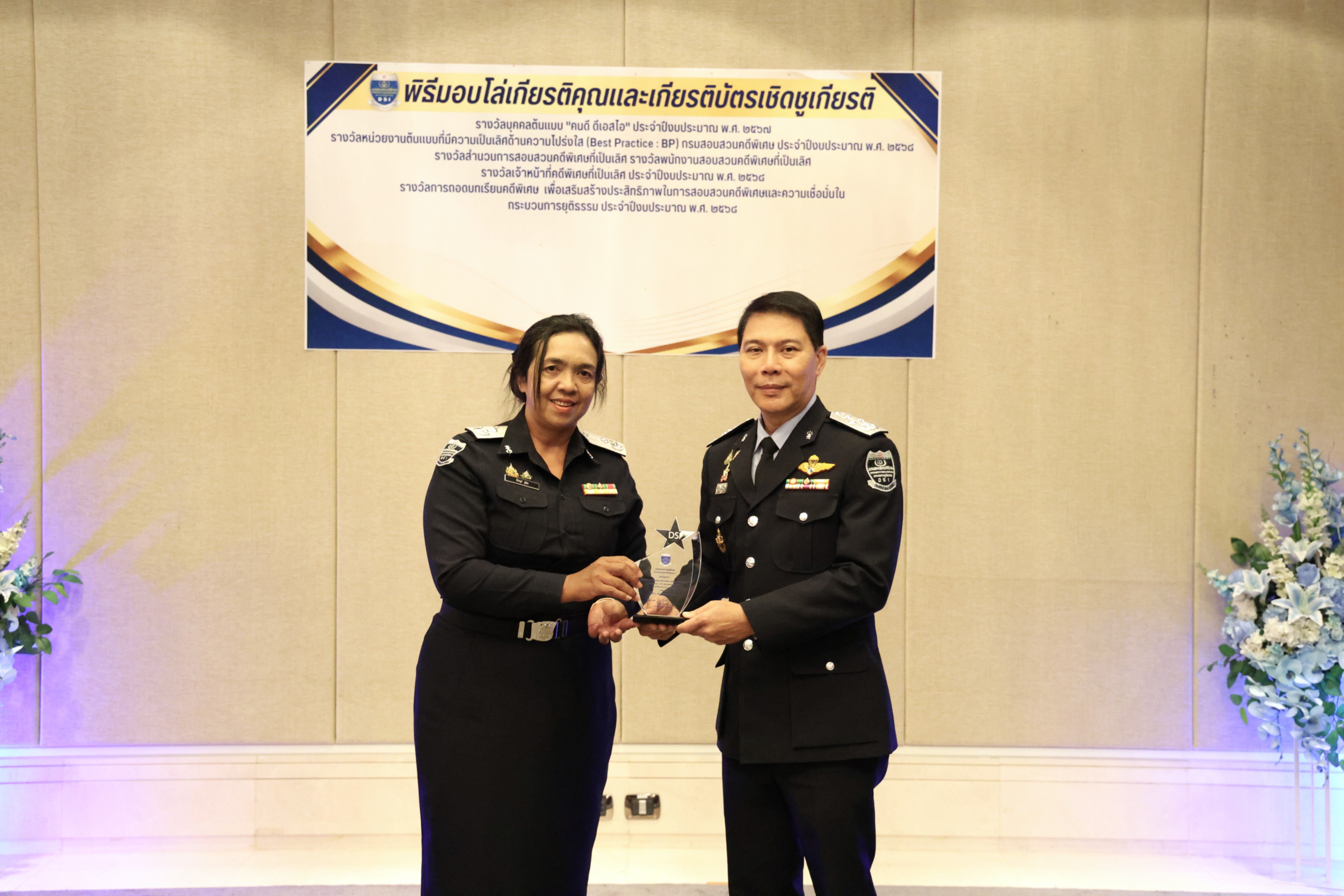 และรางวัลหน่วยงานต้นแบบที่มีความเป็นเลิศด้านความโปร่งใส (Best Practice : BP) ของกรมสอบสวนคดีพิเศษ