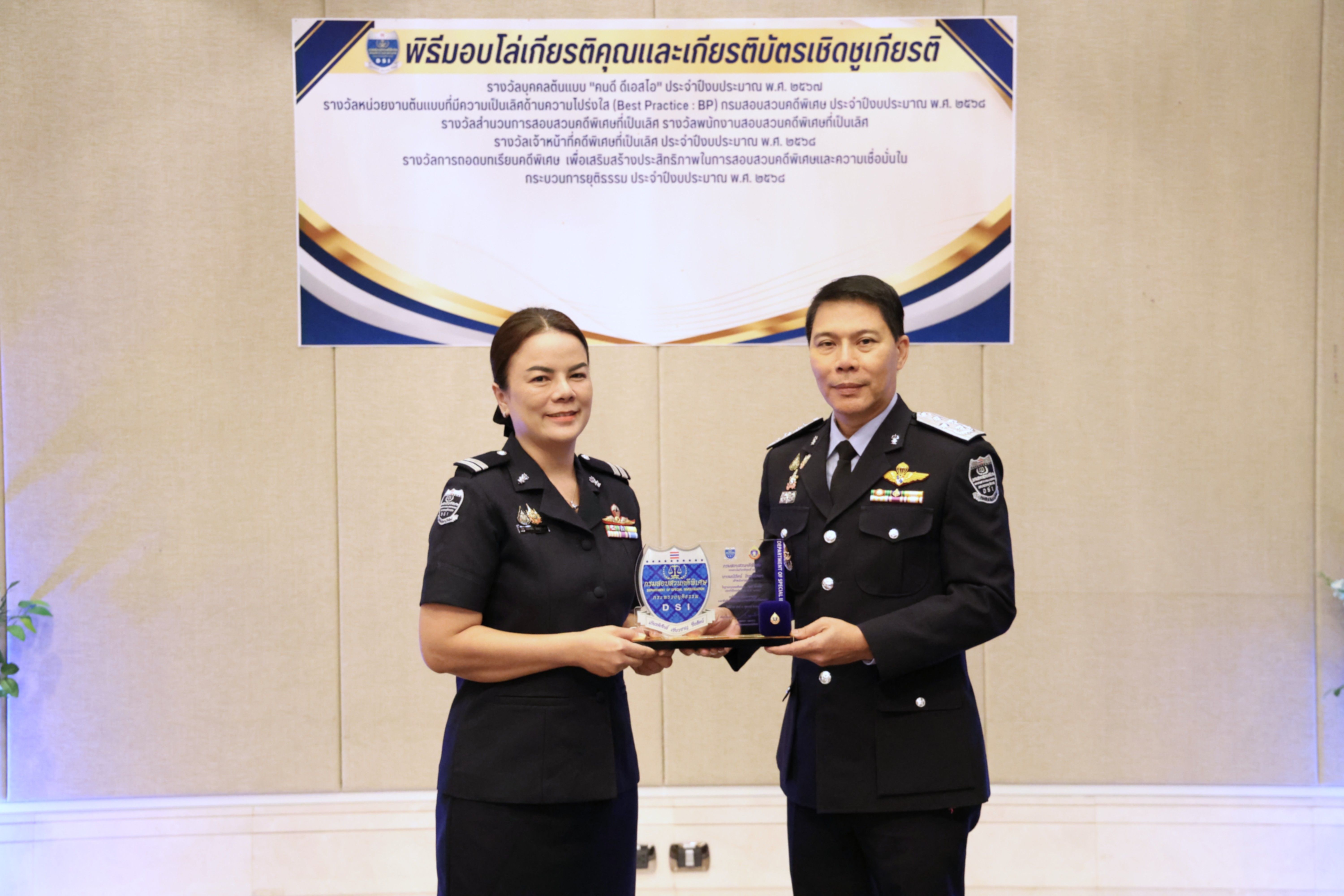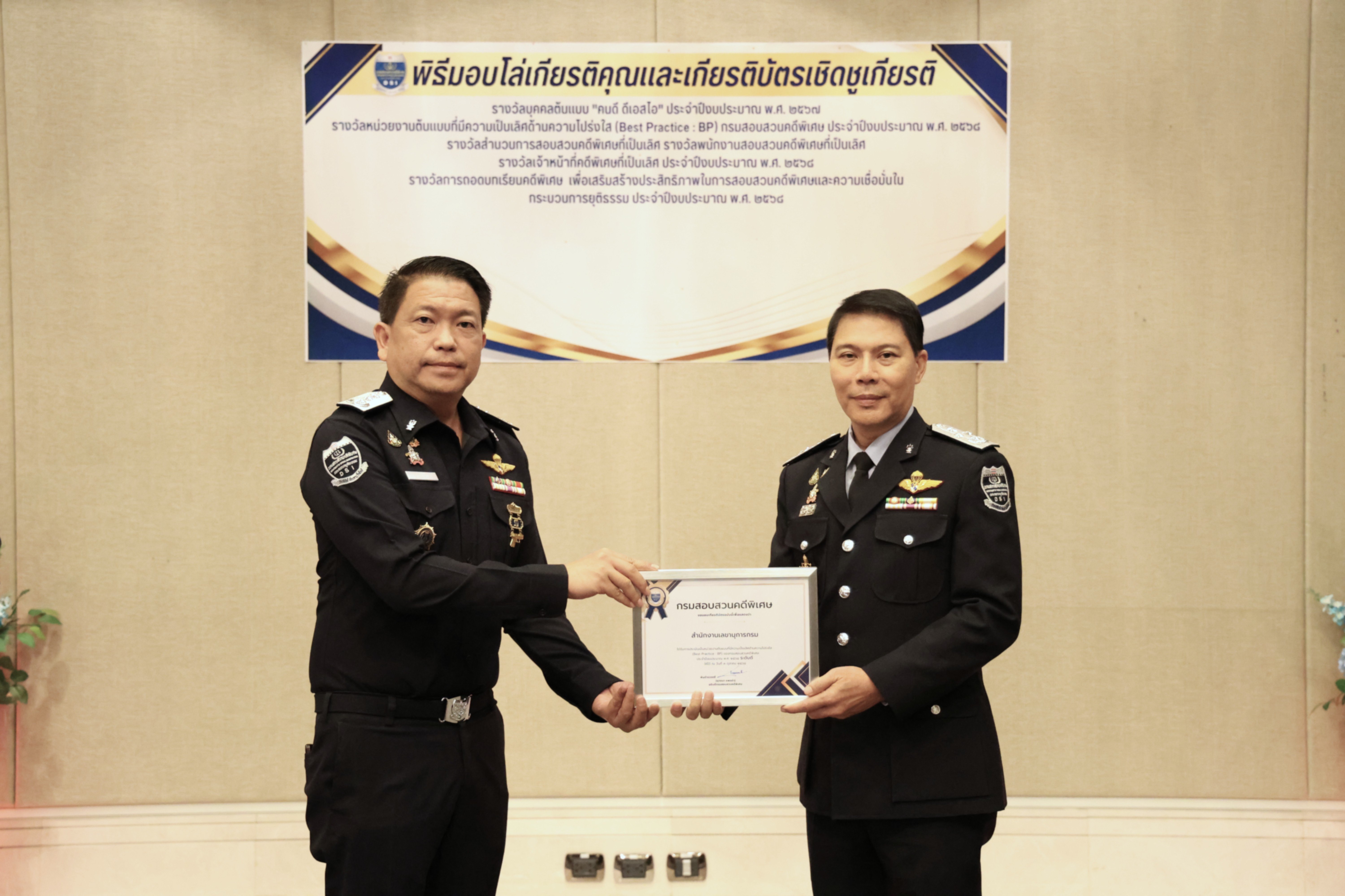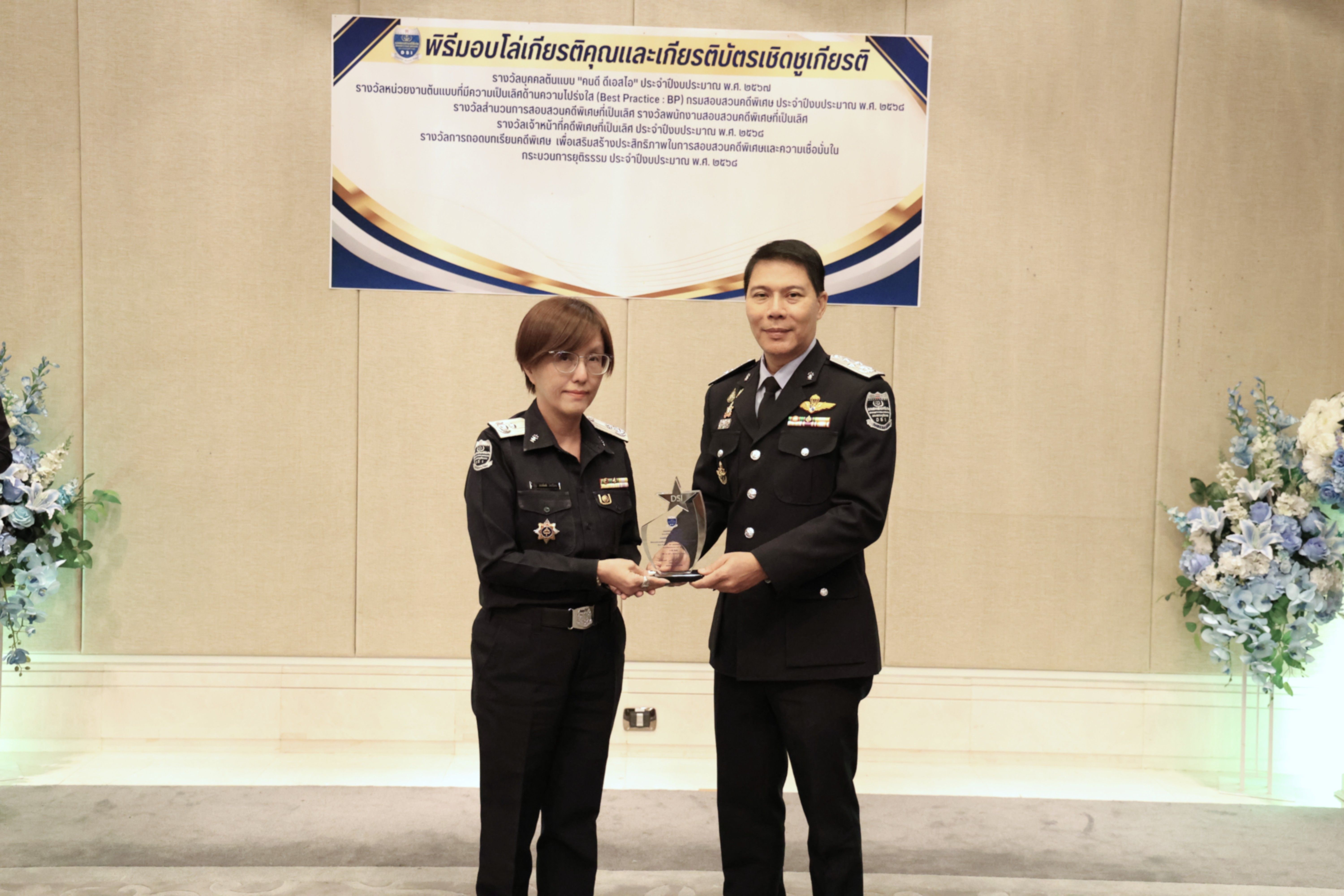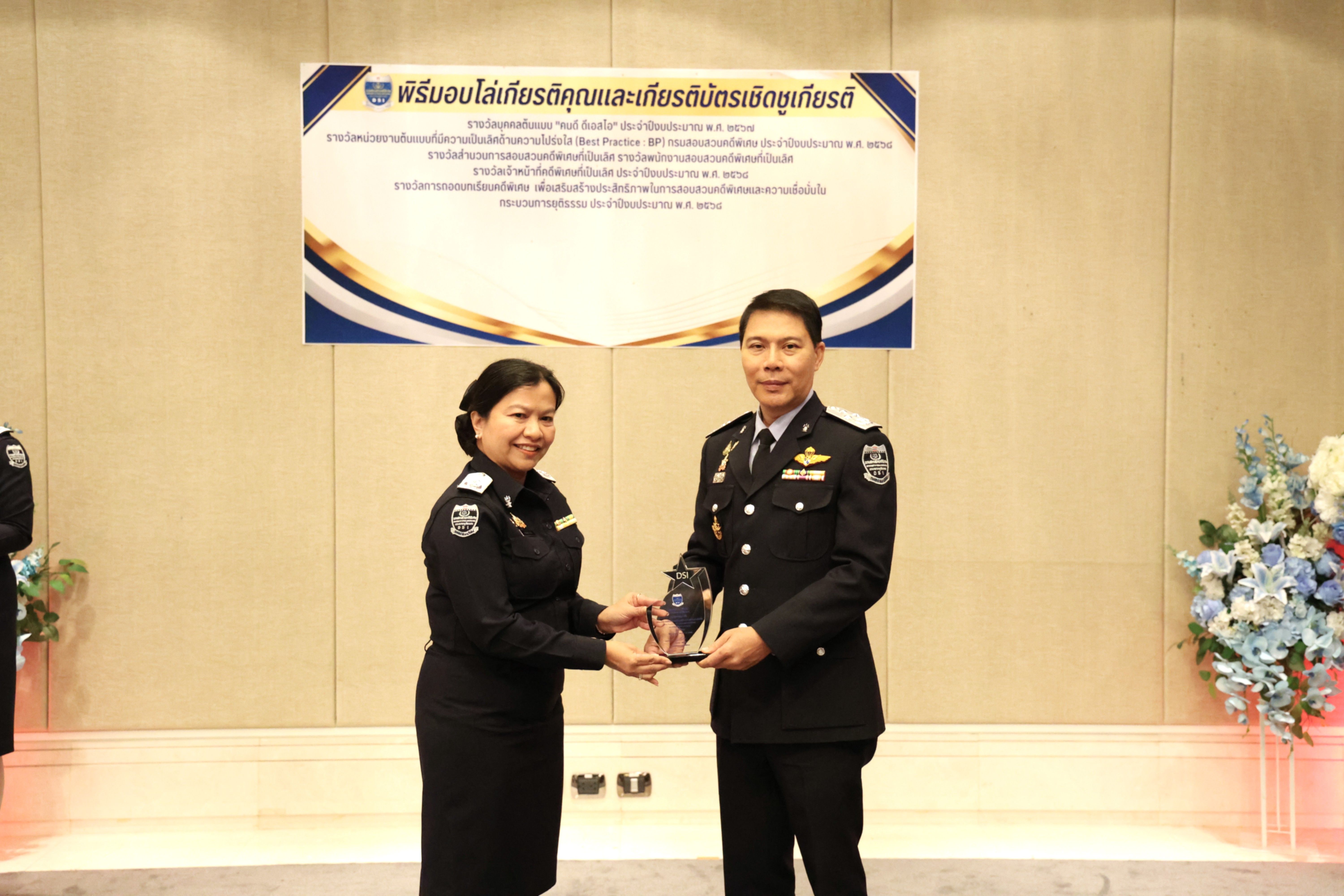 และรางวัลหน่วยงานต้นแบบที่มีความเป็นเลิศด้านความโปร่งใส (Best Practice : BP) ของกรมสอบสวนคดีพิเศษ