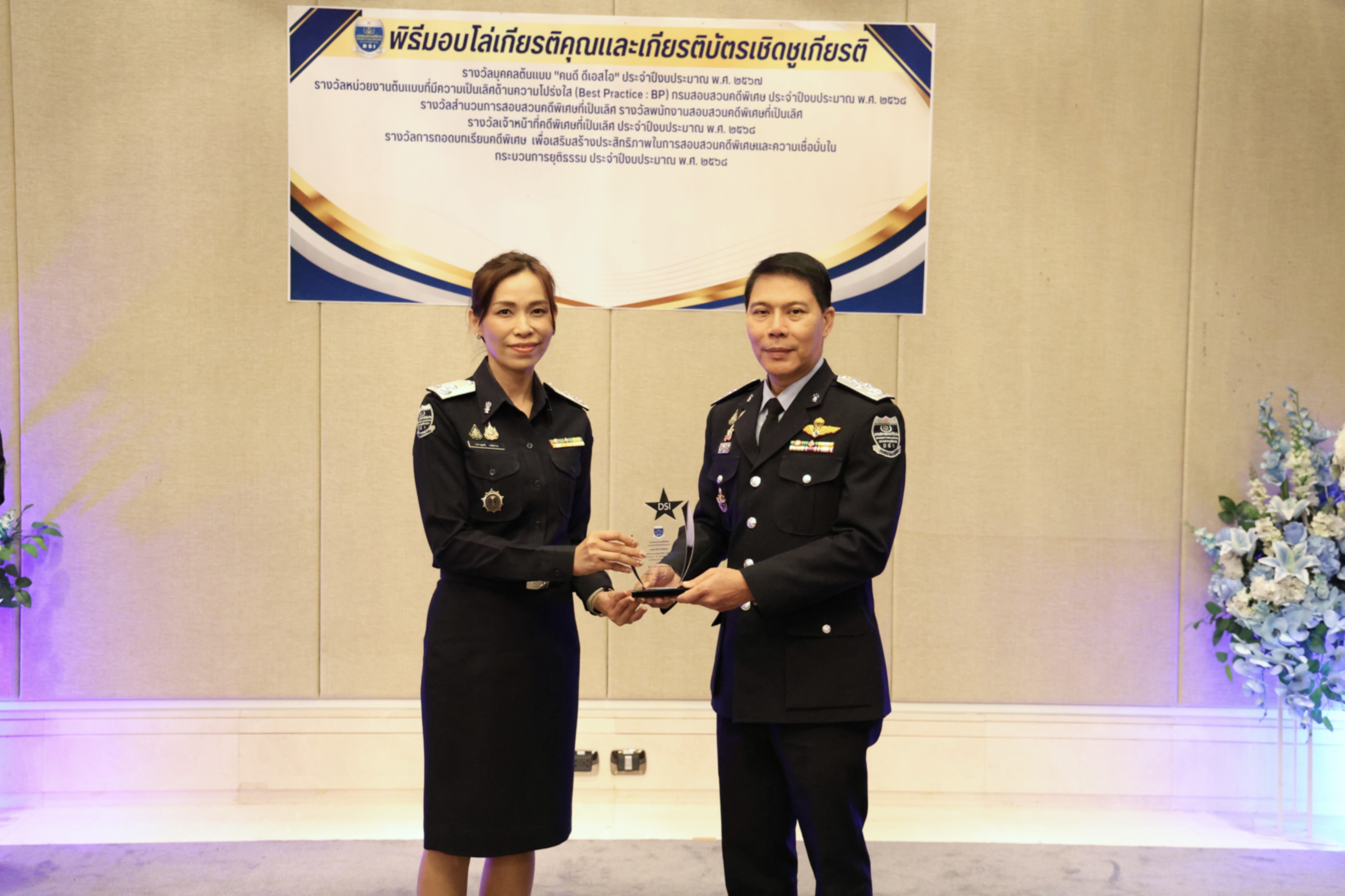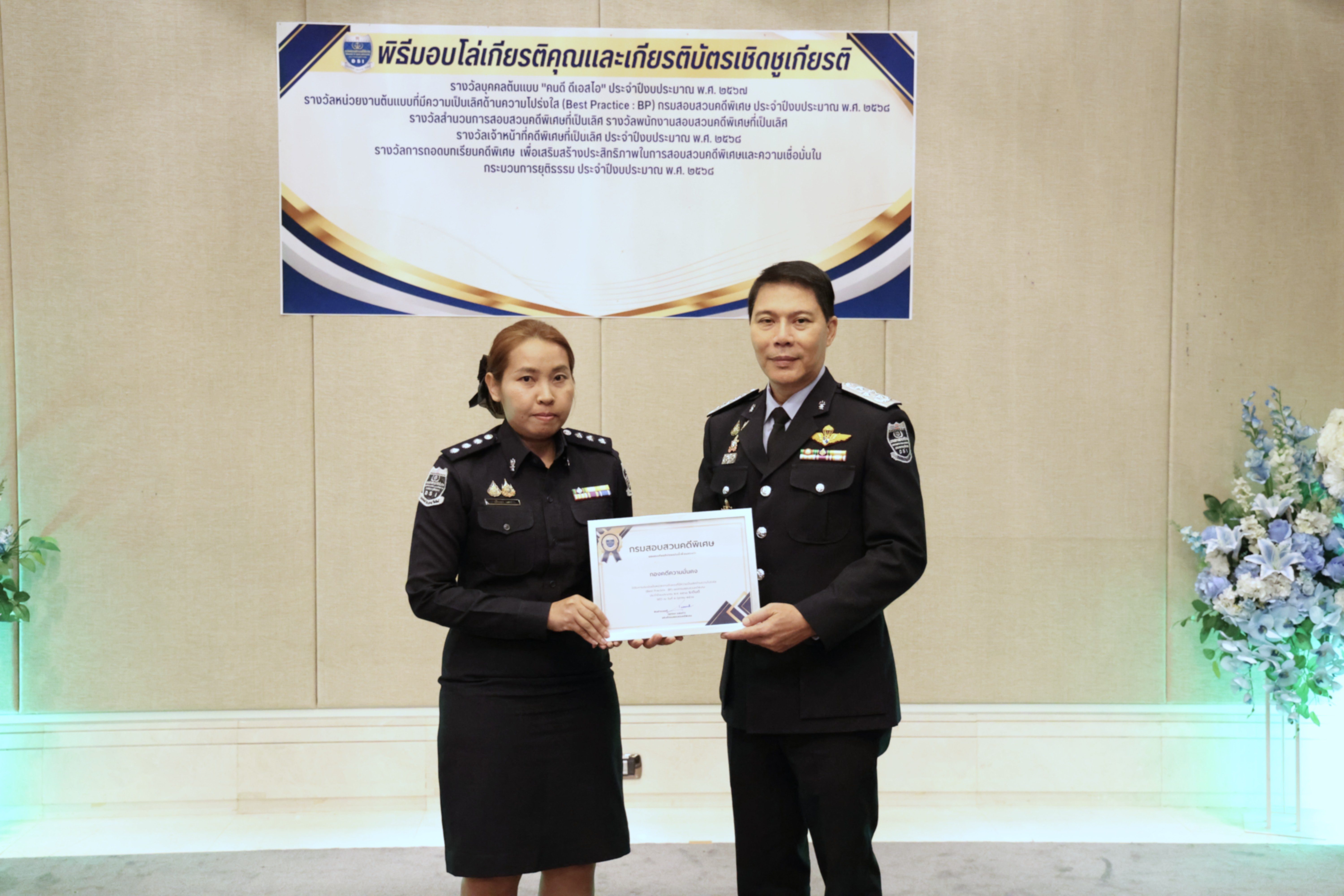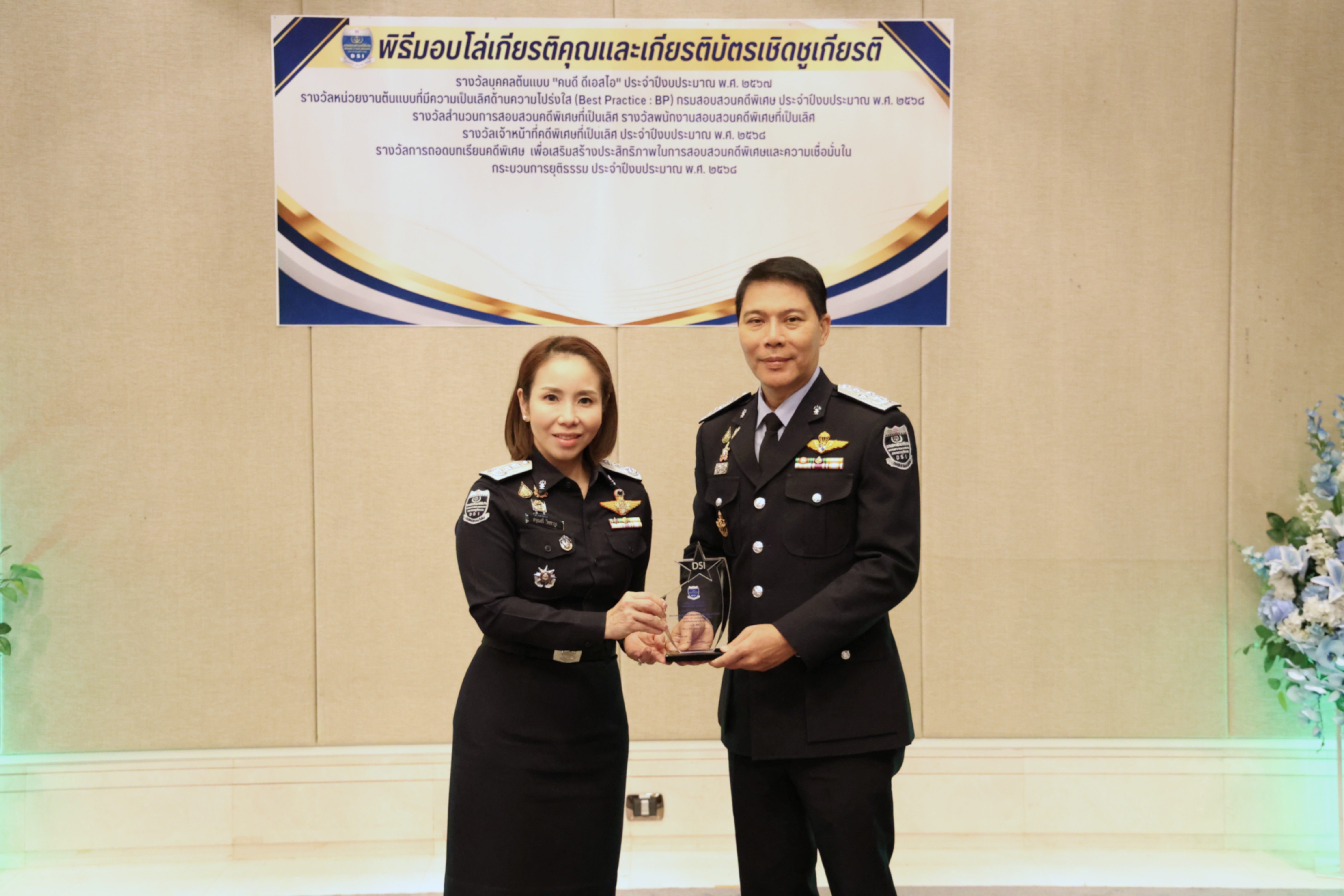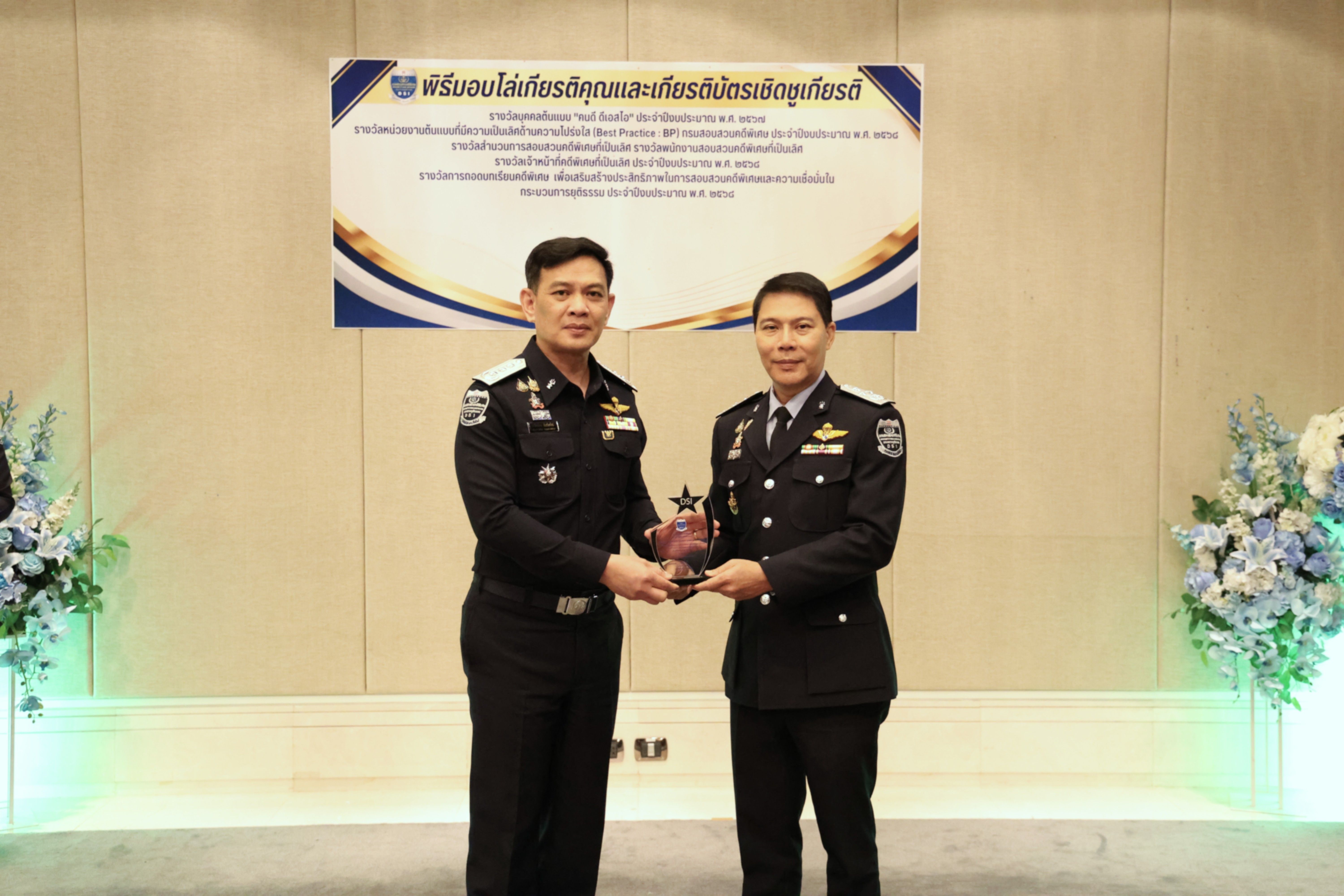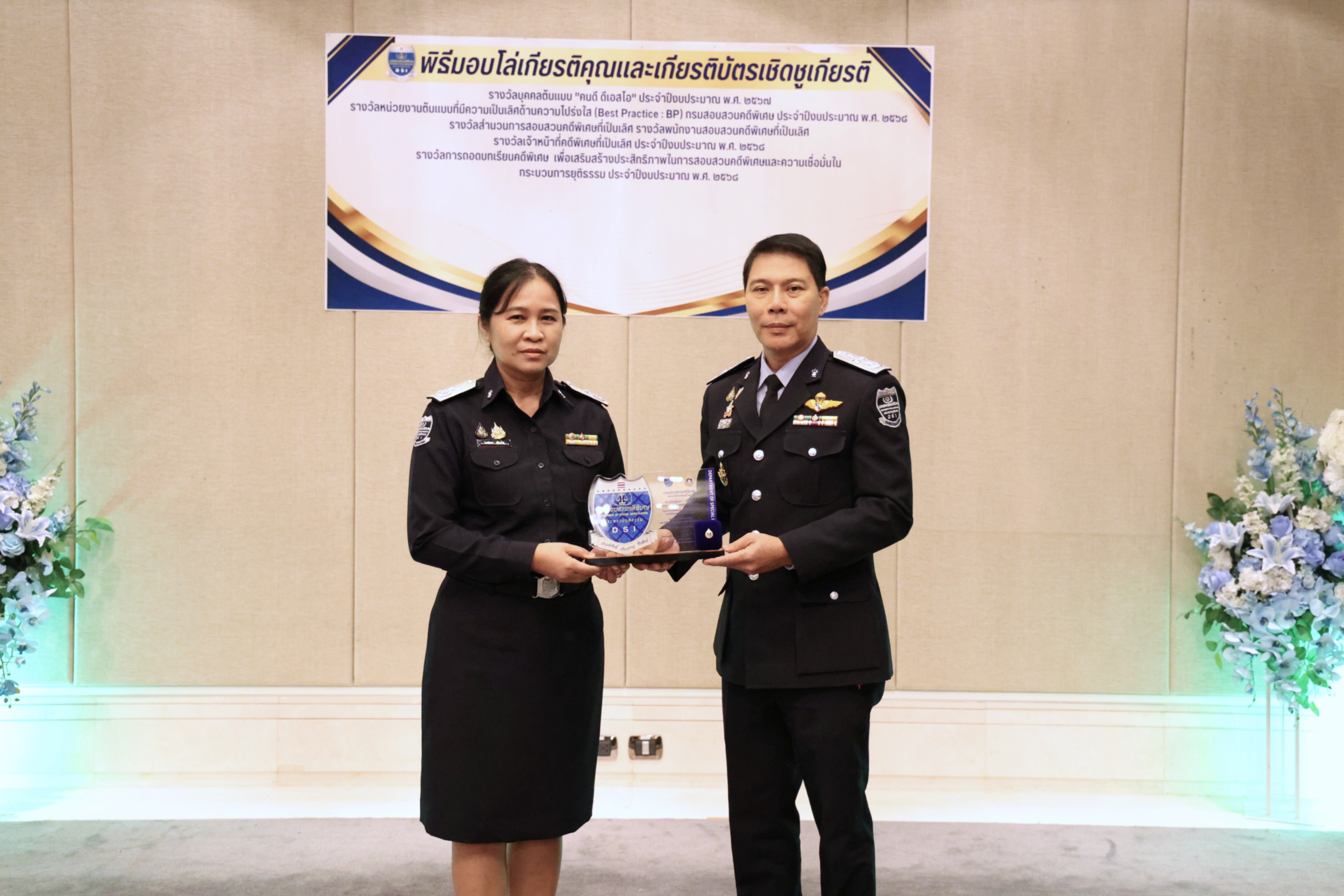 และรางวัลหน่วยงานต้นแบบที่มีความเป็นเลิศด้านความโปร่งใส (Best Practice : BP) ของกรมสอบสวนคดีพิเศษ
