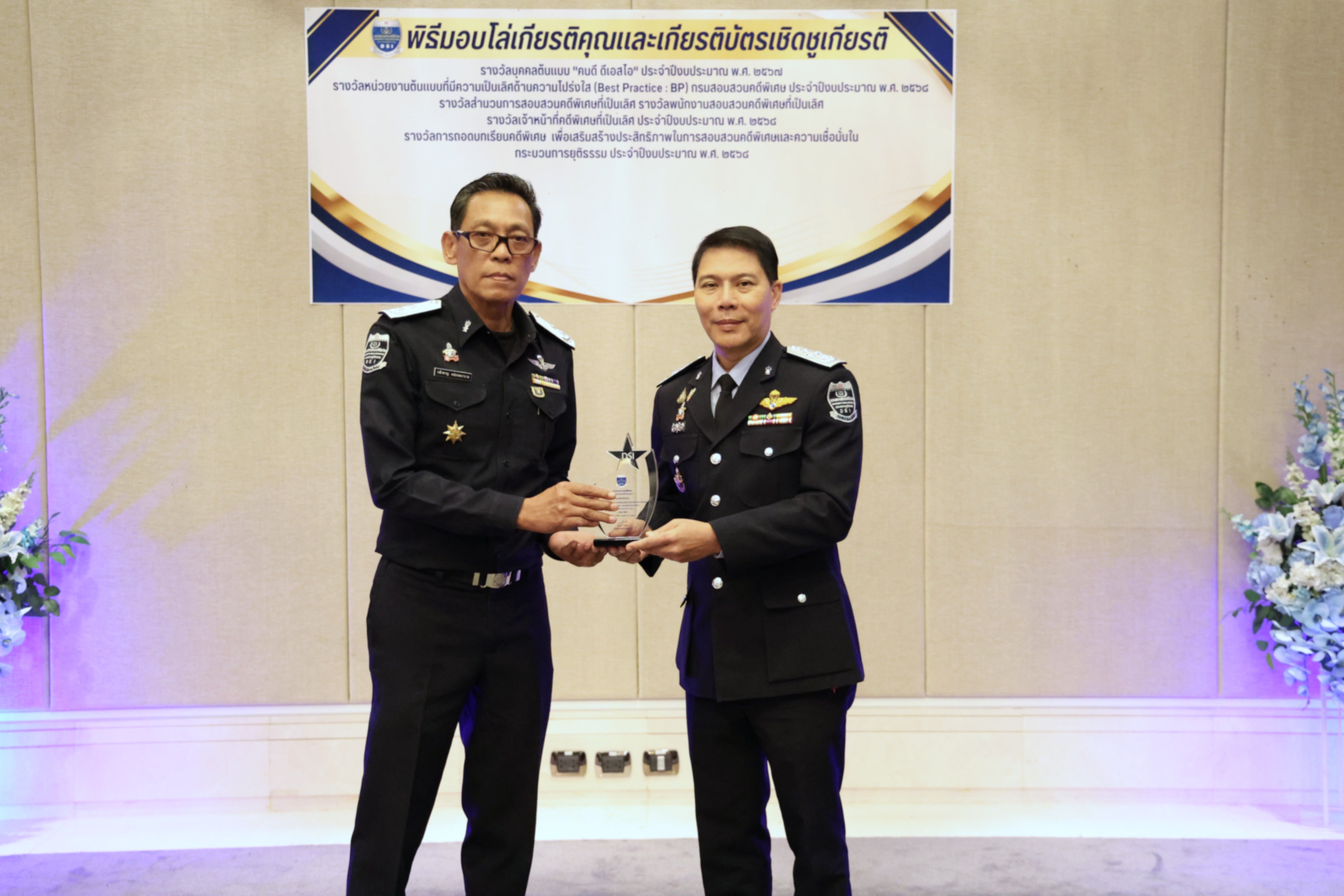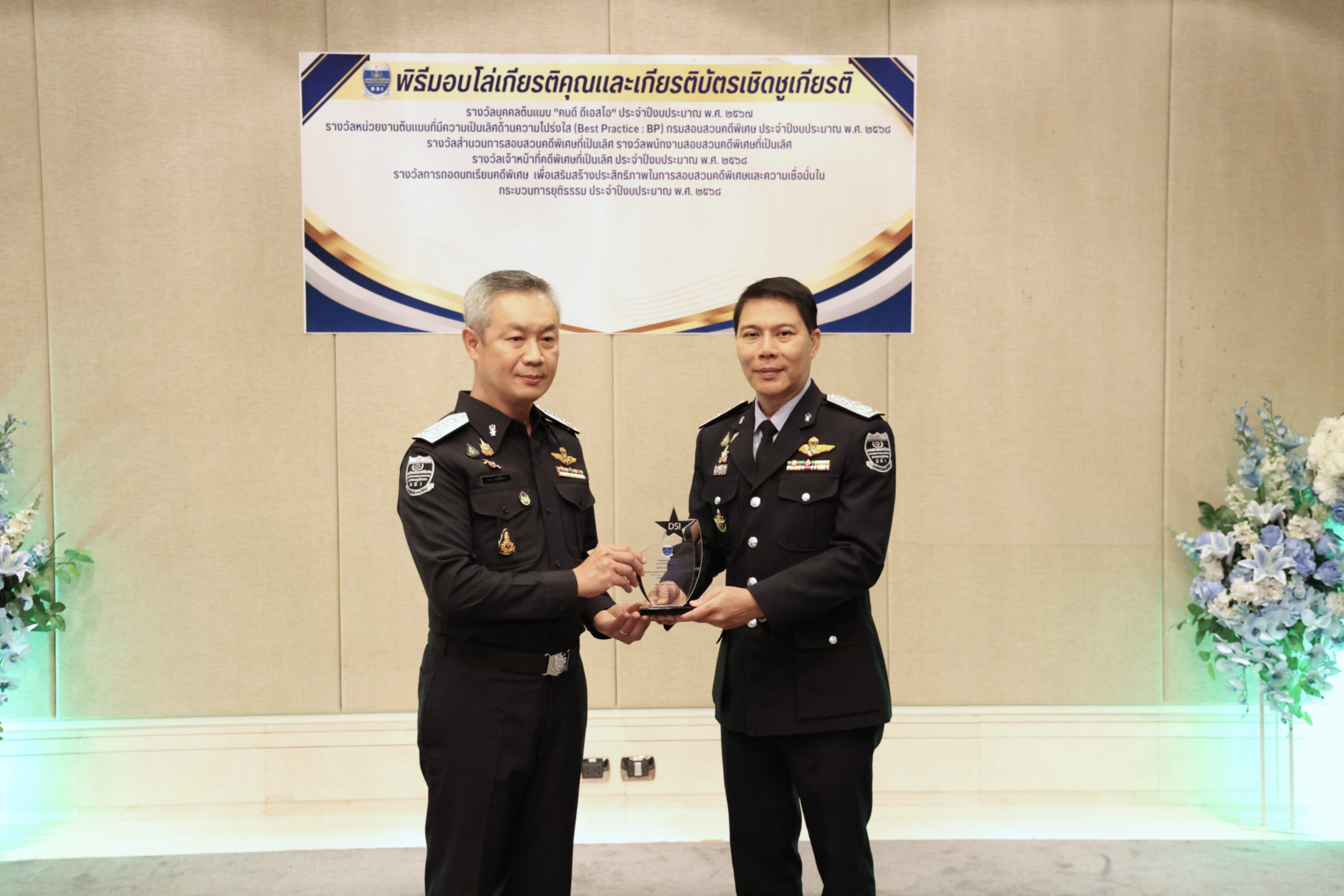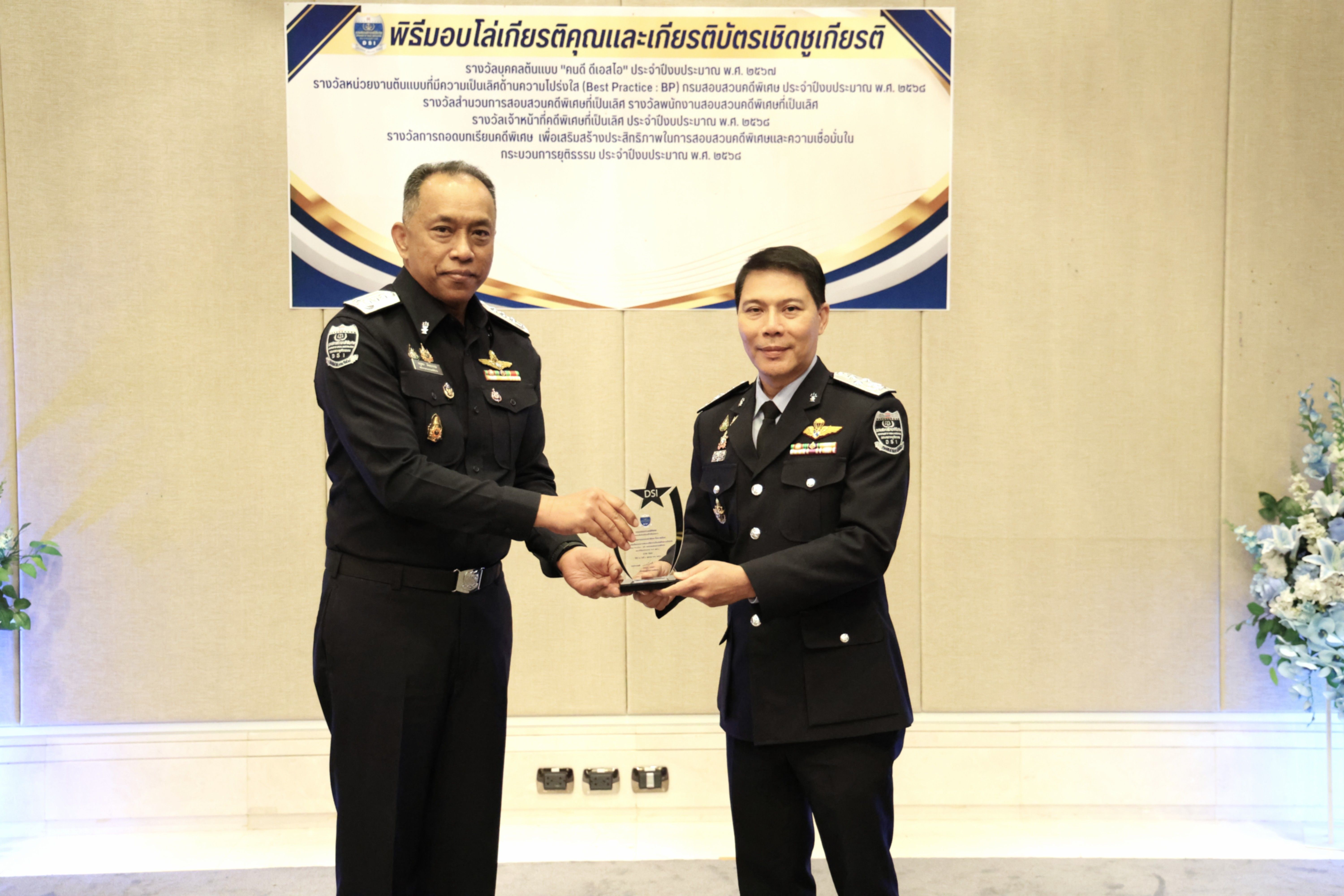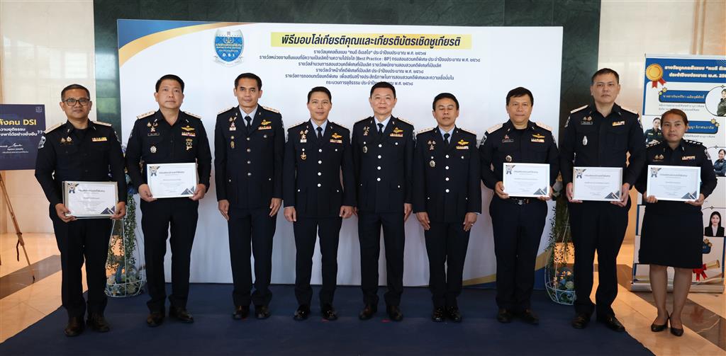 อธิบดีกรมสอบสวนคดีพิเศษมอบรางวัลบุคคลต้นแบบ “คนดี ดีเอสไอ” และรางวัลหน่วยงานต้นแบบที่มีความเป็นเลิศด้านความโปร่งใส (Best Practice : BP) ของกรมสอบสวนคดีพิเศษ