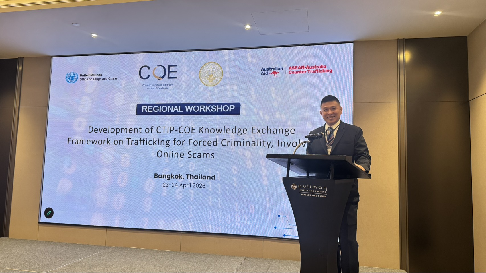 DSI participated in the Workshop on the Development of the CTIP-COE Knowledge Exchange Framework, held on 23–24 April 2026, aimed at strengthening regional knowledge exchange and enhancing law enforcement capacity to address trafficking for forced criminality, particularly online scam-related cases.