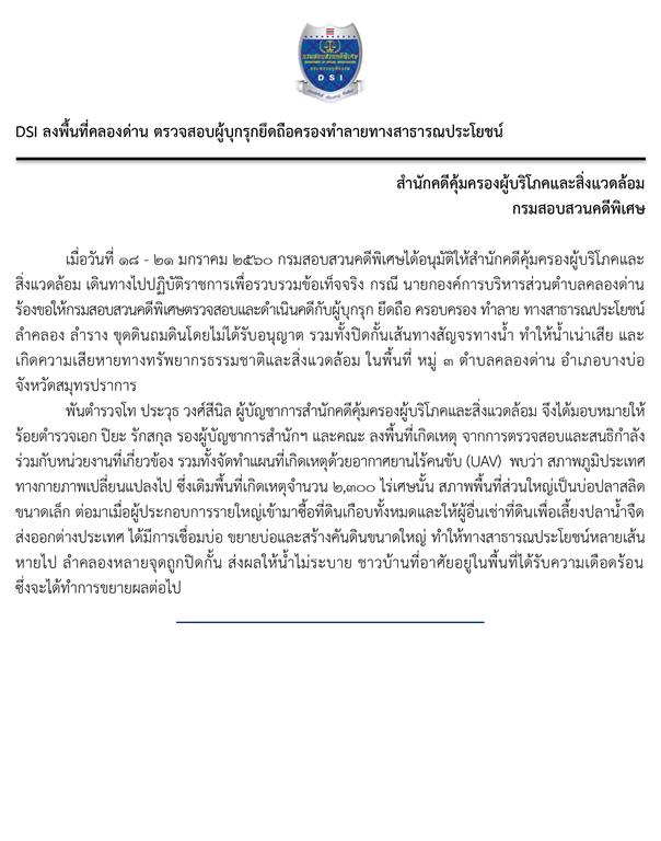 DSI ลงพื้นที่คลองด่าน ตรวจสอบผู้บุกรุกยึดถือครองทำลายทางสาธารณประโยชน์