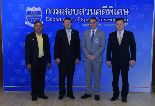 On Thursday, April 18, 2019, 1:30 p.m., at the DSI, Mr. Steve Ethier, the Royal Canadian Mounted Police’s Regional Manager for Asia Pacific stationed at the Embassy of Canada in Bangkok, Thailand paid a courtesy call on the Director-General Pol.Col.Paisit Wongmuang, his Deputy Director-General Pol.Lt.Col.Prakorn Sucheevakun, and Pol.Col.Akarapol Punyopashtambha, the Director of Foreign Affairs and Transnational Crime Bureau.
