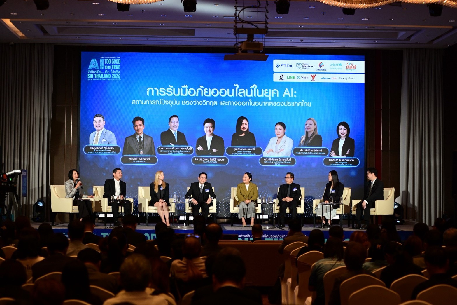 ภายในงาน ร้อยตำรวจเอก เขมชาติ ประกายหงษ์มณี ได้ร่วมเป็นวิทยากรบรรยายในหัวข้อ “การรับมือภัยออนไลน์ในยุค AI” โดยให้ความรู้เกี่ยวกับรูปแบบภัยคุกคามทางไซเบอร์ที่เปลี่ยนแปลงไปตามพัฒนาการของเทคโนโลยี พร้อมแนวทางการป้องกันและรับมืออย่างมีประสิทธิภาพ ขณะที่ นายลักษมณ์ เฉลิมชัย พนักงานสอบสวนคดีพิเศษชำนาญการ ได้ร่วมบรรยายในหัวข้อ “AI เด็ก และการบังคับใช้กฎหมาย” เพื่อสะท้อนมุมมองด้านกฎหมายและการคุ้มครองเด็กจากภัยออนไลน์ที่เกี่ยวข้องกับการใช้เทคโนโลยี AI